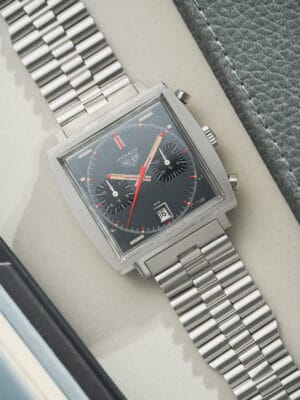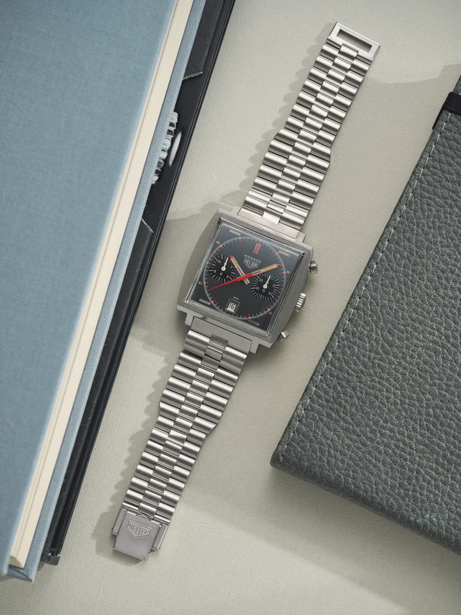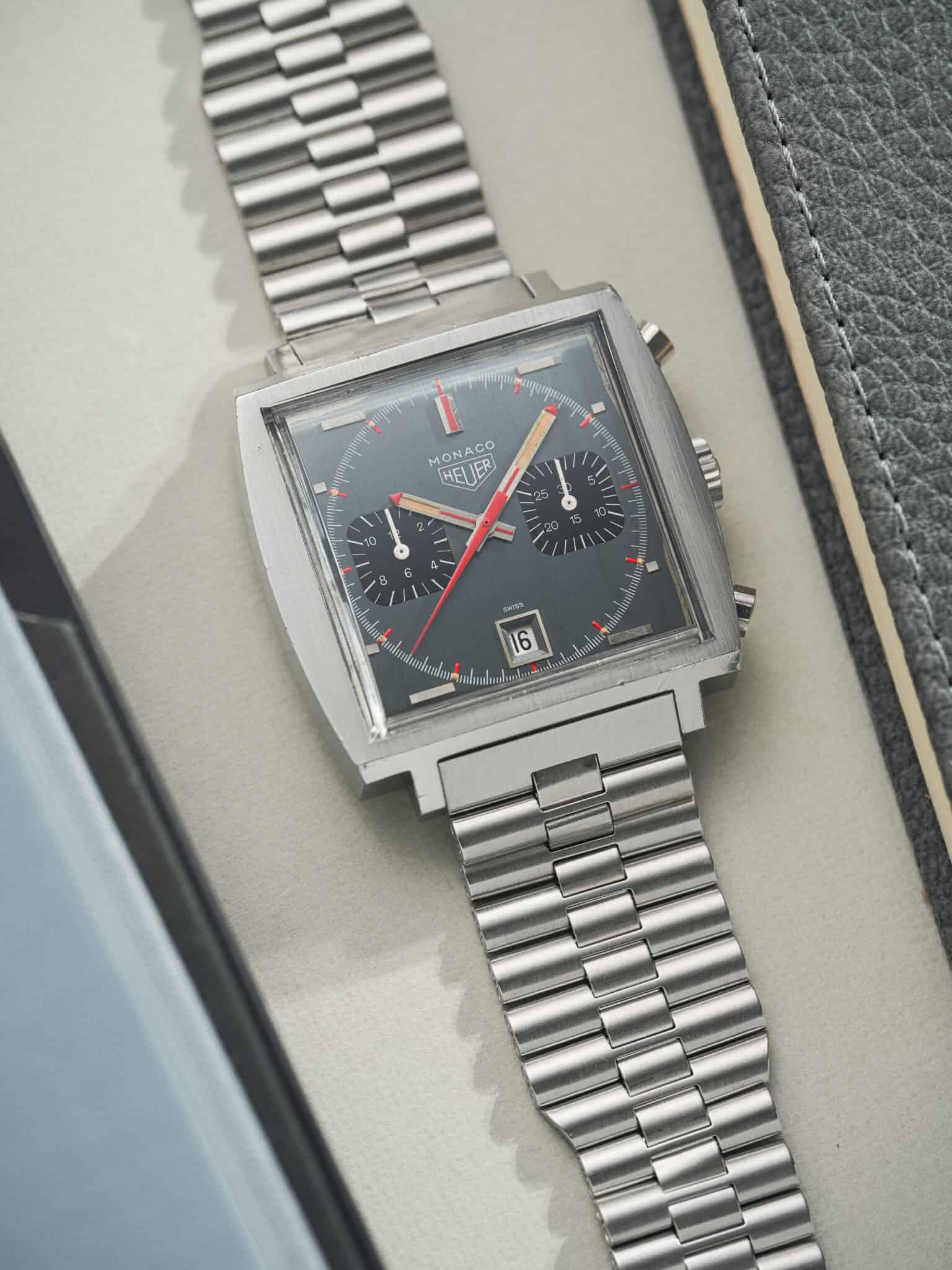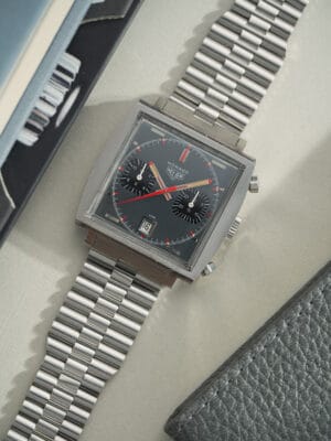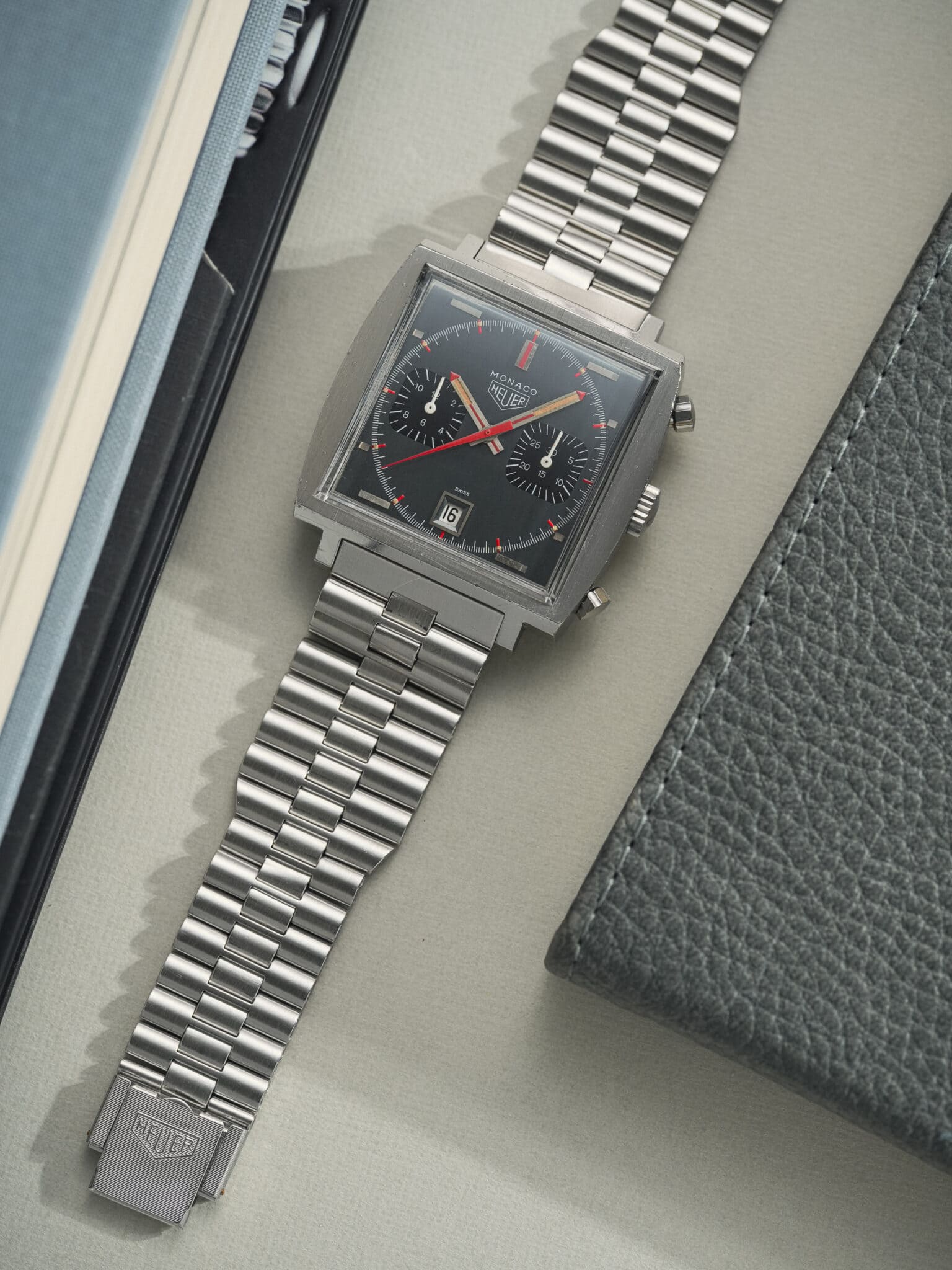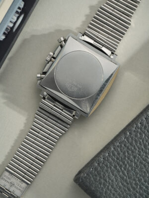 This particular watch is extraordinary not only for its rarity, but for its pristine, unpolished condition. The stainless-steel case retains all its original geometry and sharp definition, a survivor from an era when square Monacos were often softened by polishing.