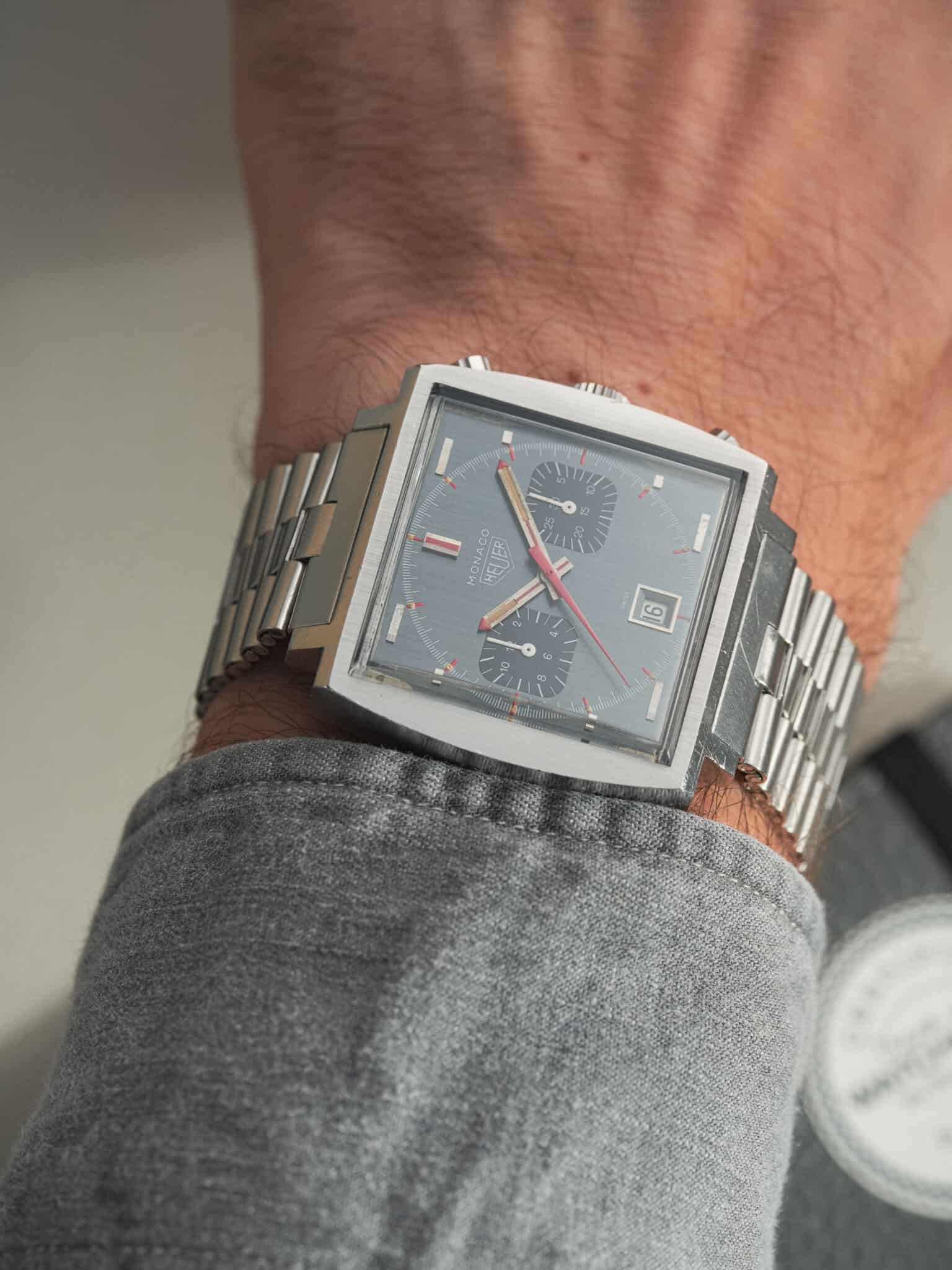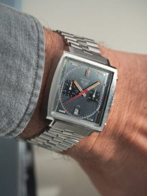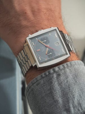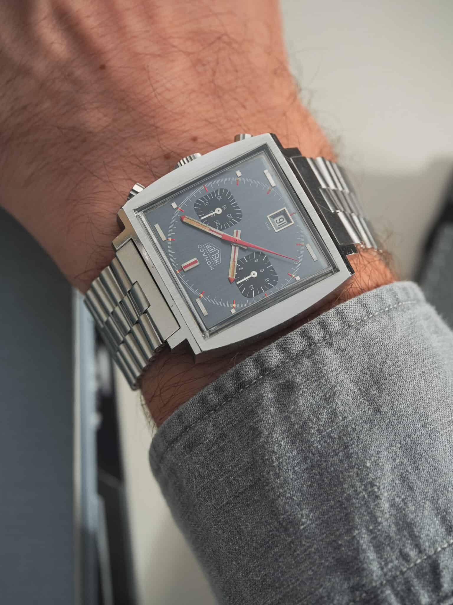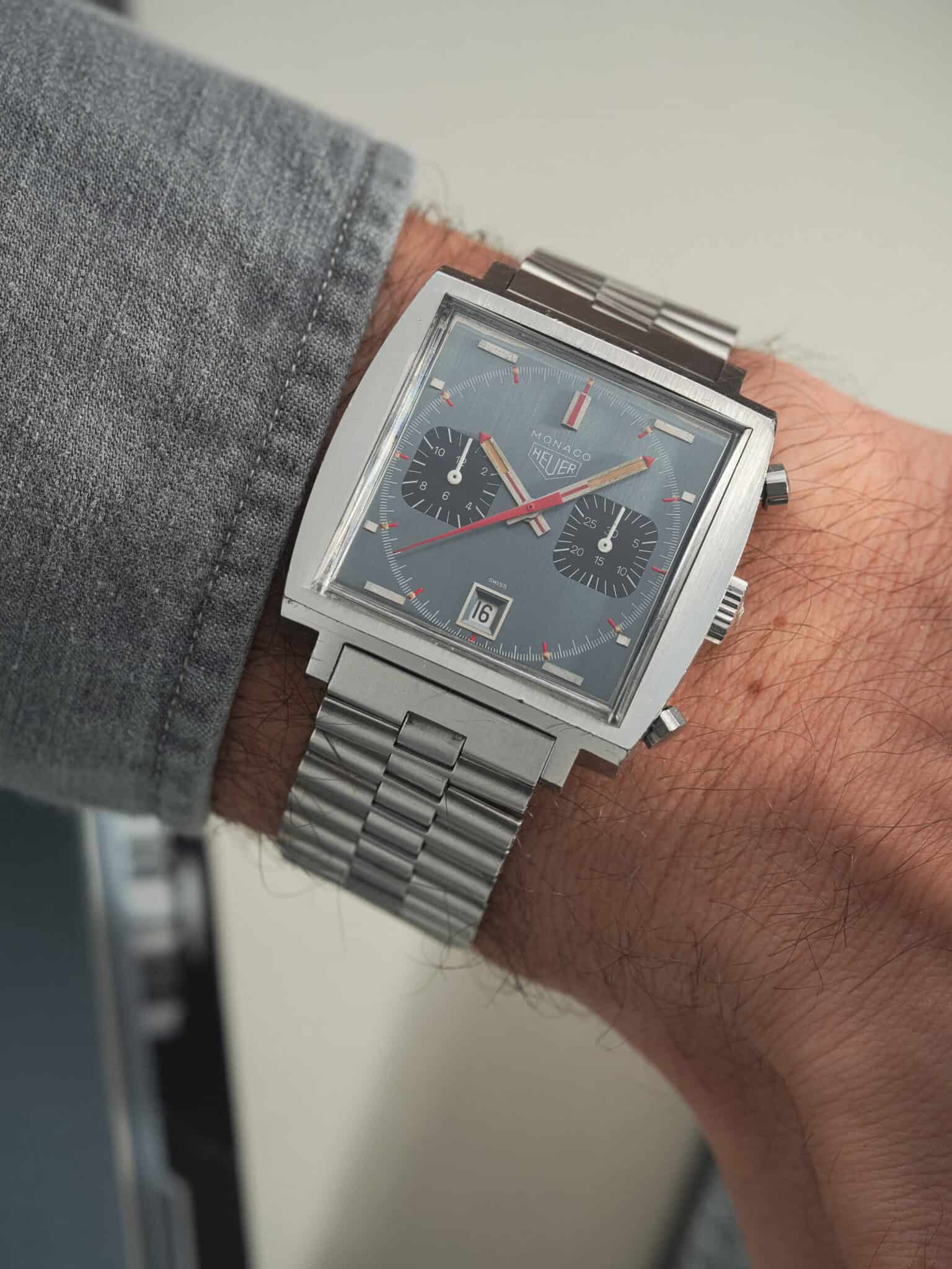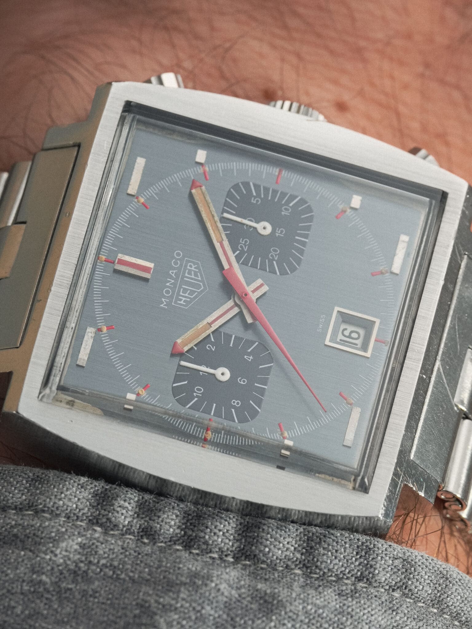 This particular watch is extraordinary not only for its rarity, but for its pristine, unpolished condition. The stainless-steel case retains all its original geometry and sharp definition, a survivor from an era when square Monacos were often softened by polishing.