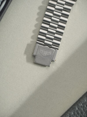 It is accompanied by the original NSA two-piece stainless-steel bracelet, signed “HEUER”, itself an increasingly rare survival. Correctly fitted, it enhances the watch’s period-correct presence and completes the ensemble exactly as it left the factory.