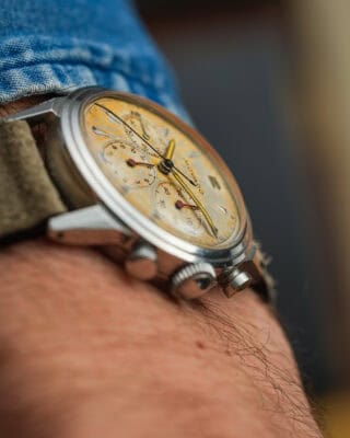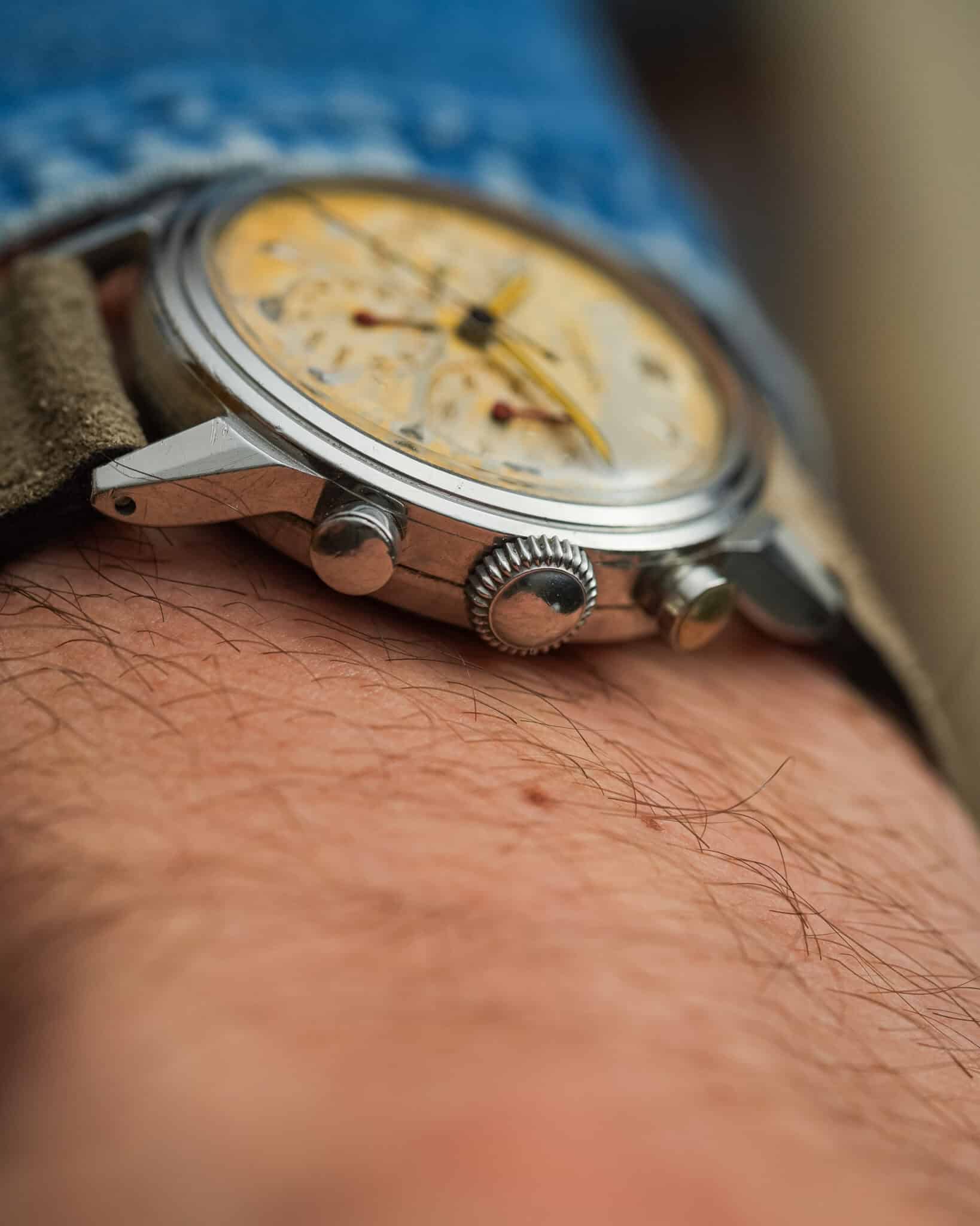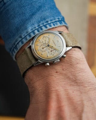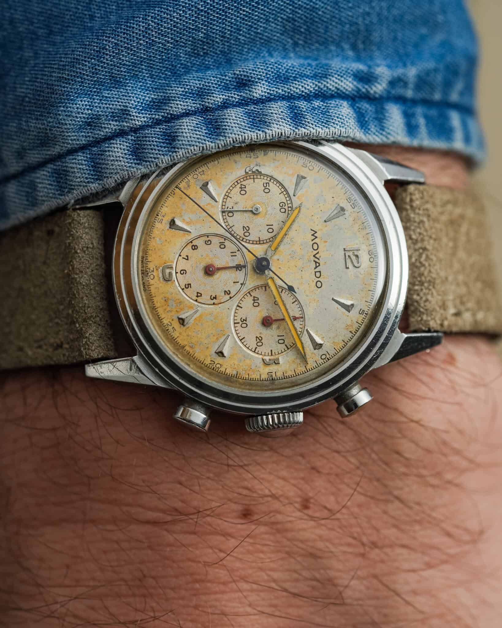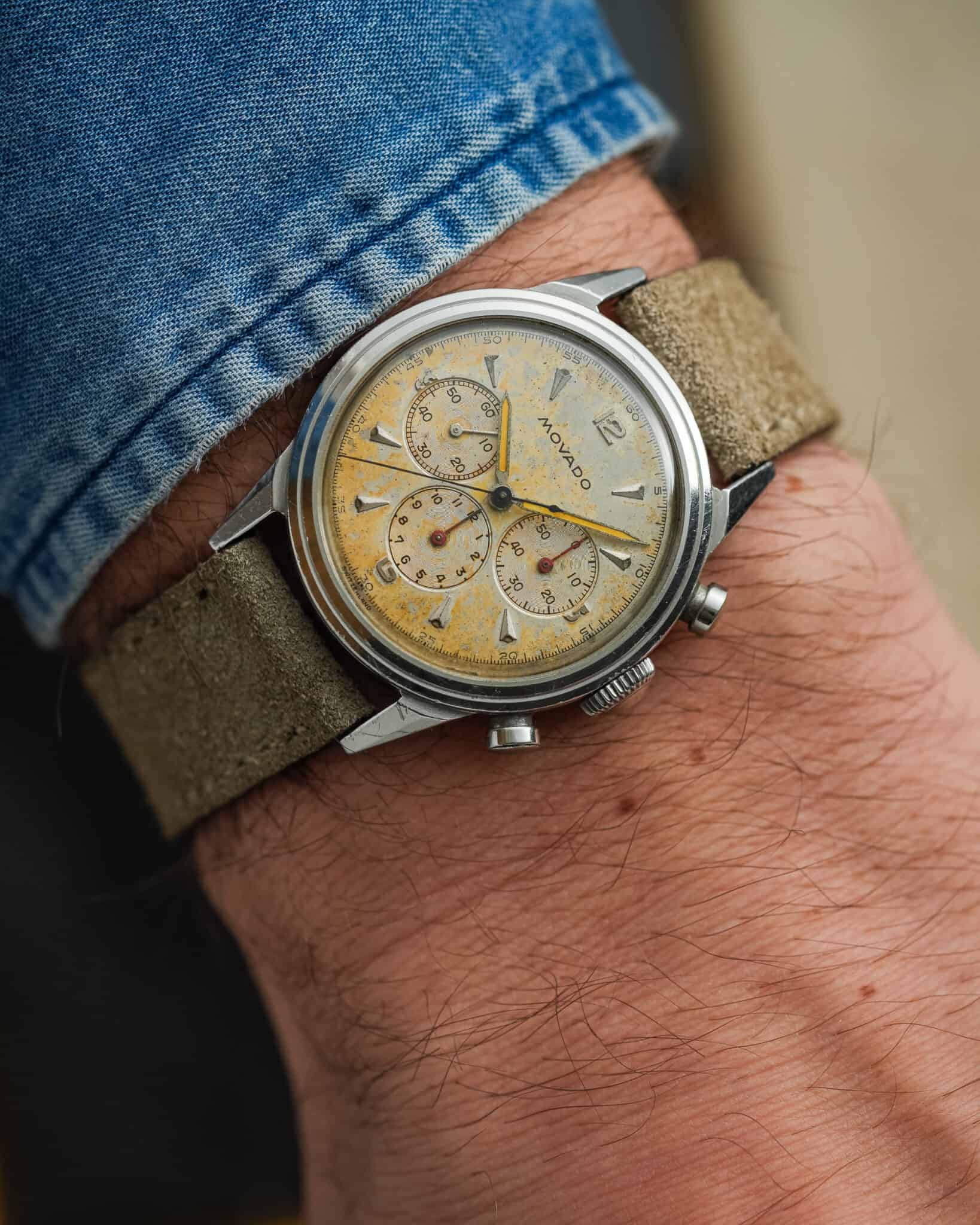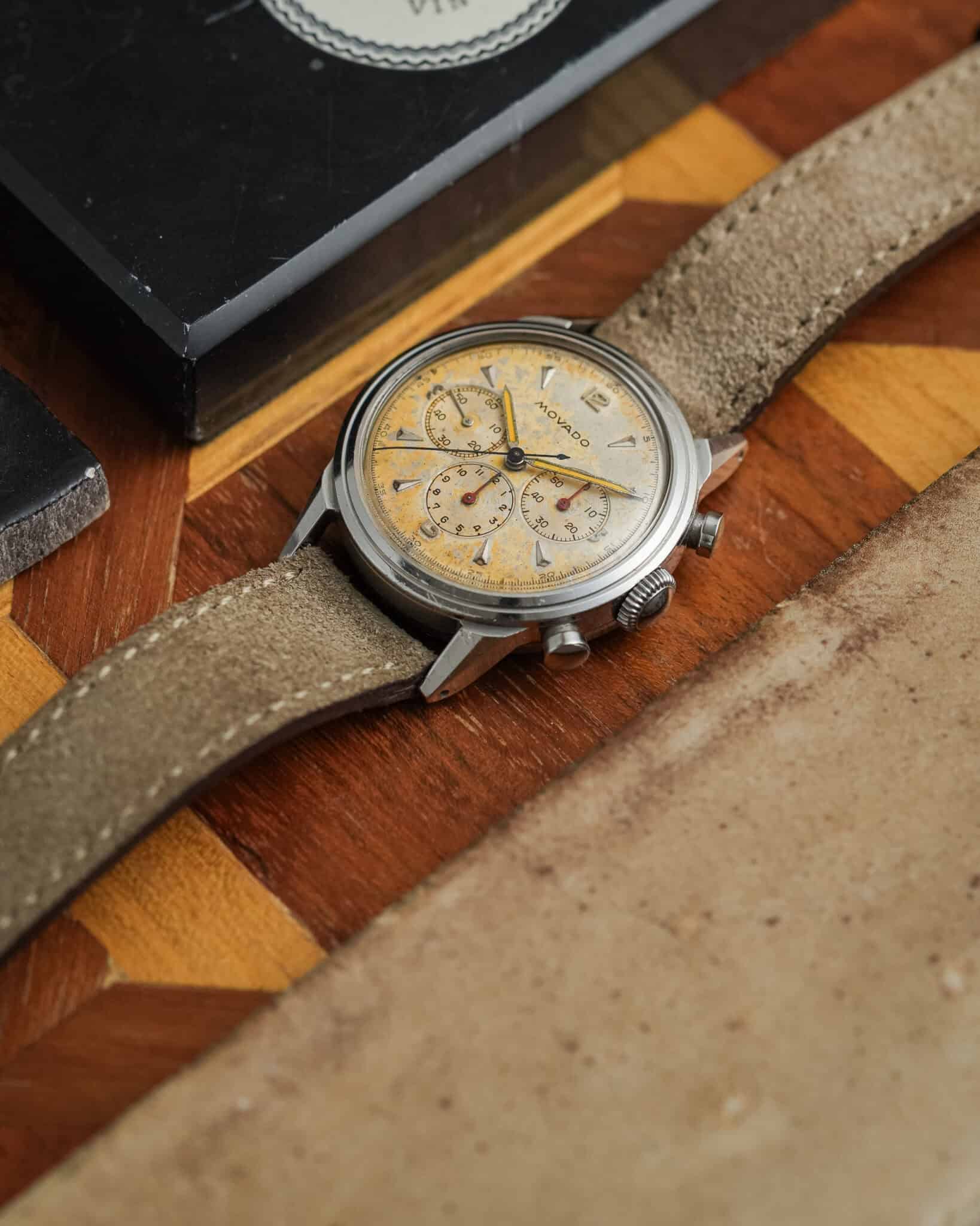 MOVADO M95 Chronograph – Ref. 19038 – Arrow Head Dial – F. Borgel Case – 1940s