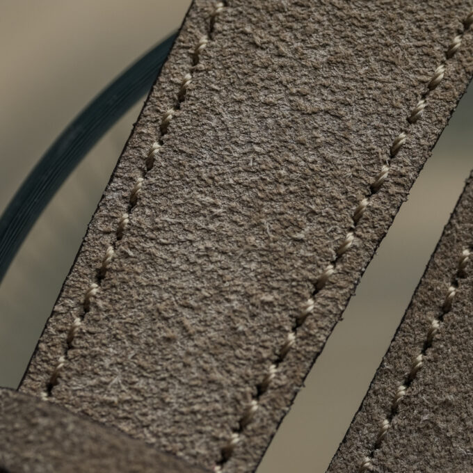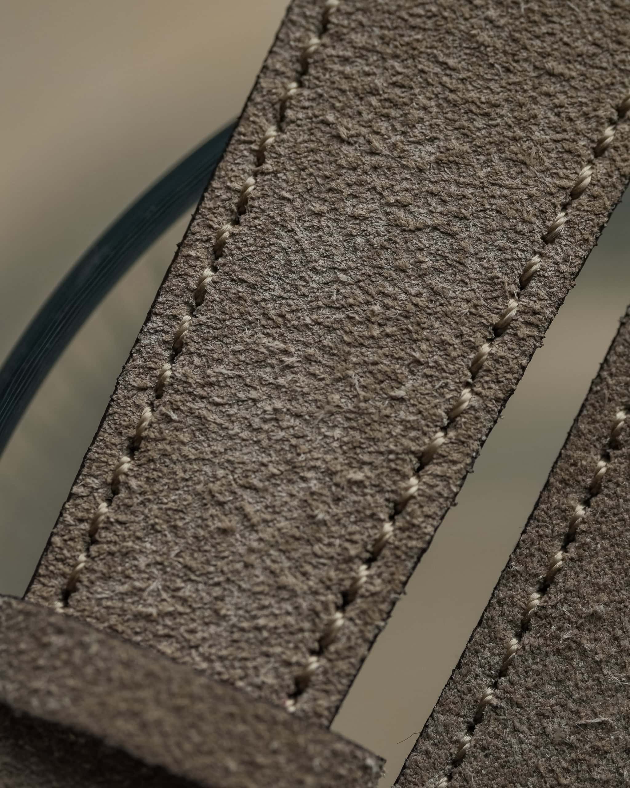 The suede calf leather and buttery-soft lining are sourced from deep within the Bavarian forest, produced by the last remaining German calf-leather tannery—an institution that refuses to compromise on purity or quality. Free of harmful substances and finished to perfection, the leather radiates a natural elegance that only true craftsmanship can achieve. Its textured surface evokes the sand of wind-sculpted dunes, rising in soft waves as a car drifts through them—dynamic, alive, tactile.