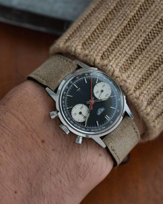 New hand made in Germany suede leather strap and original Heuer pin buckle