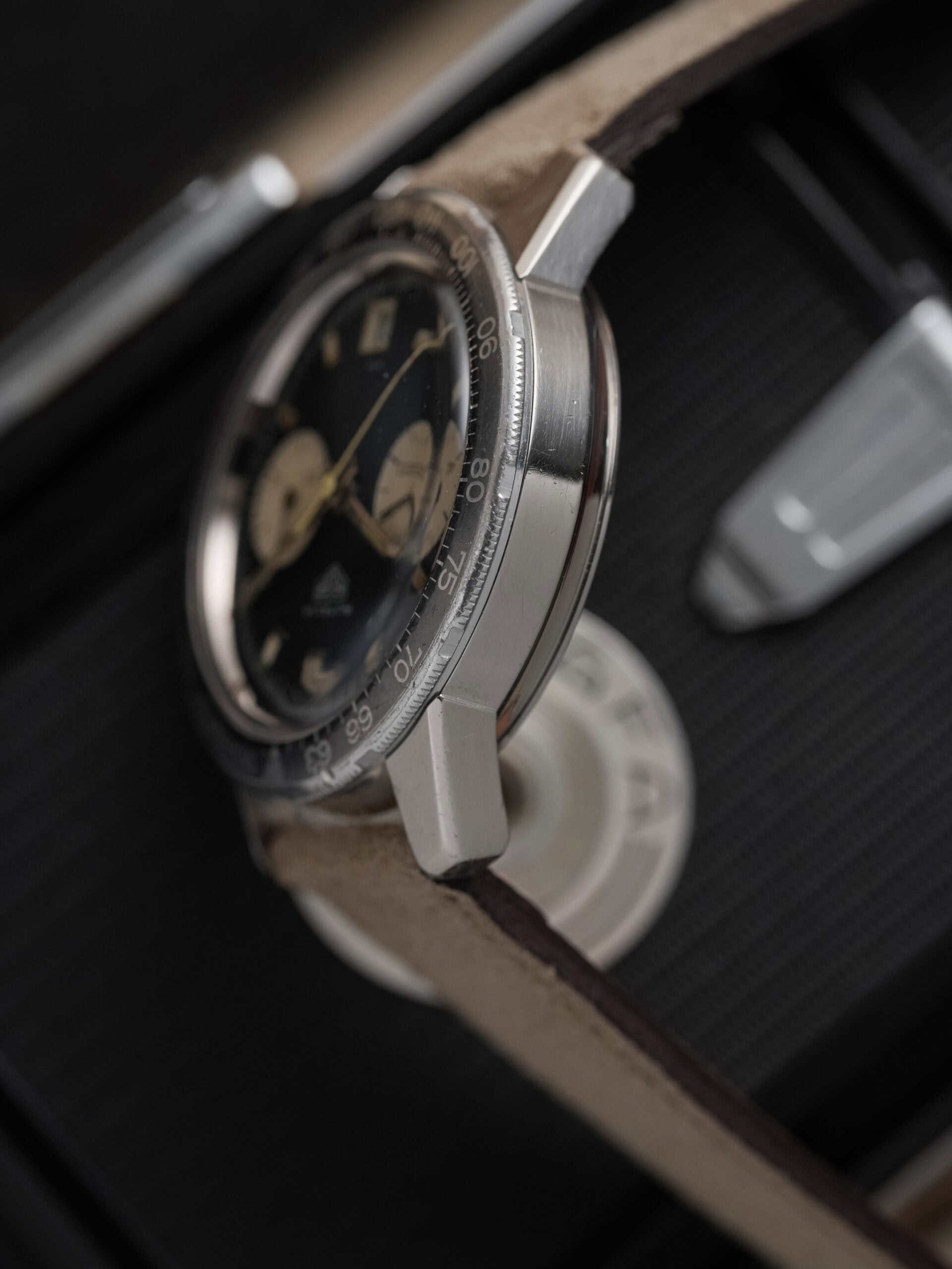 The watch is in good overall condition, showing clear but honest signs of wear consistent with age. The case has developed attractive vintage patina and appears unpolished. The dial, however, is in great condition, with minimal aging and a warm vanilla-toned tachymeter hand that really brings it to life.