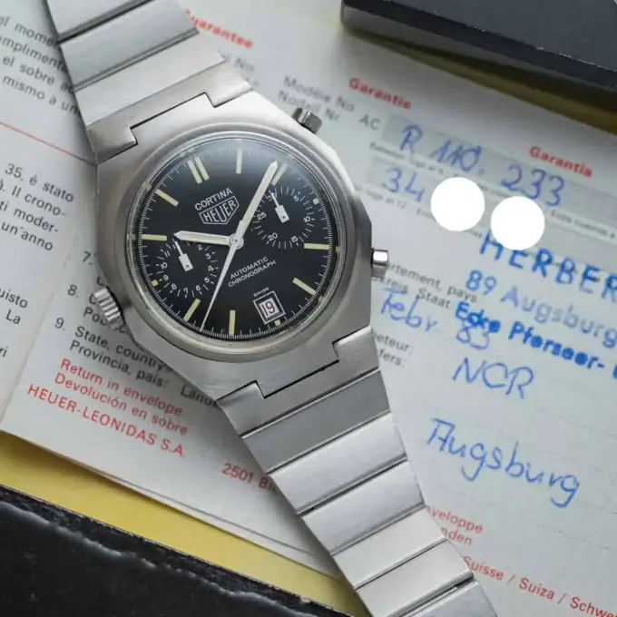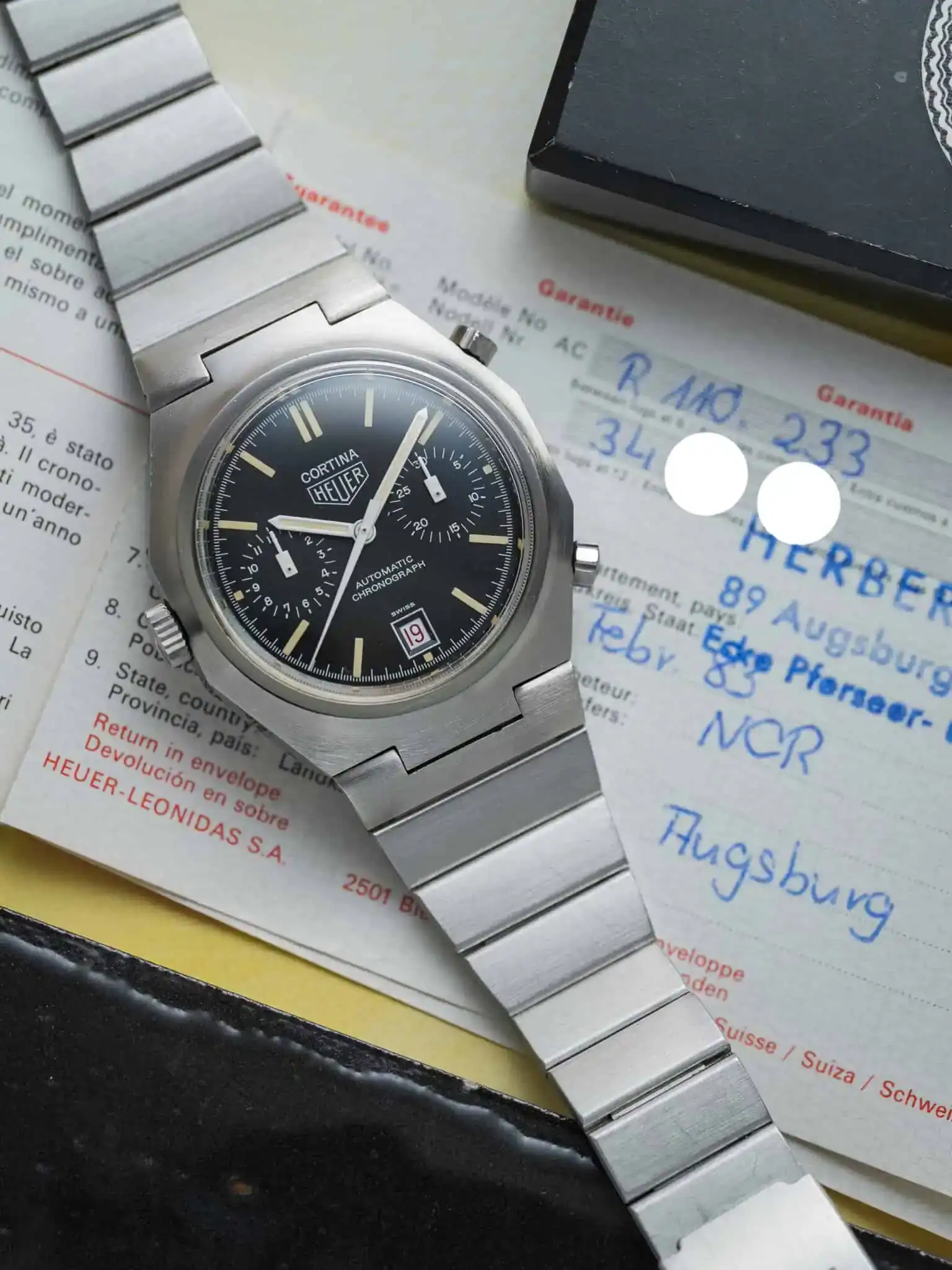 Adding to its story, the watch comes with its original blue HEUER box (without inlay) and the original papers, stamped February 1983 in Augsburg, Germany.
