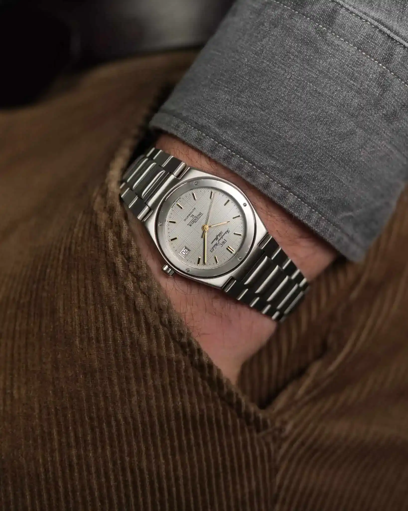 You like the 34 mm Ingenieur models with an integrated bracelet? – Great, you found the highly sought-after reference 3506 in all stainless steel with a captivating gray graph paper dial.