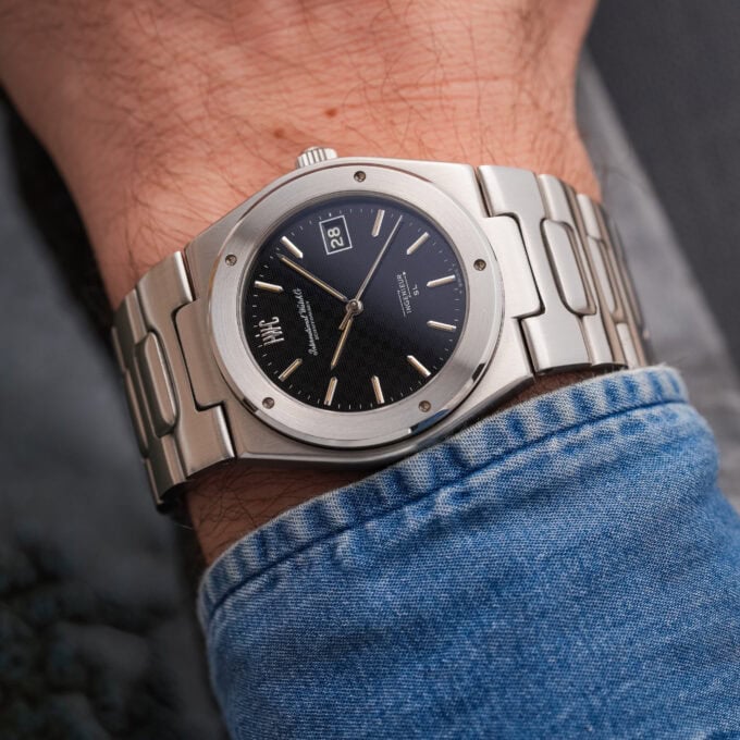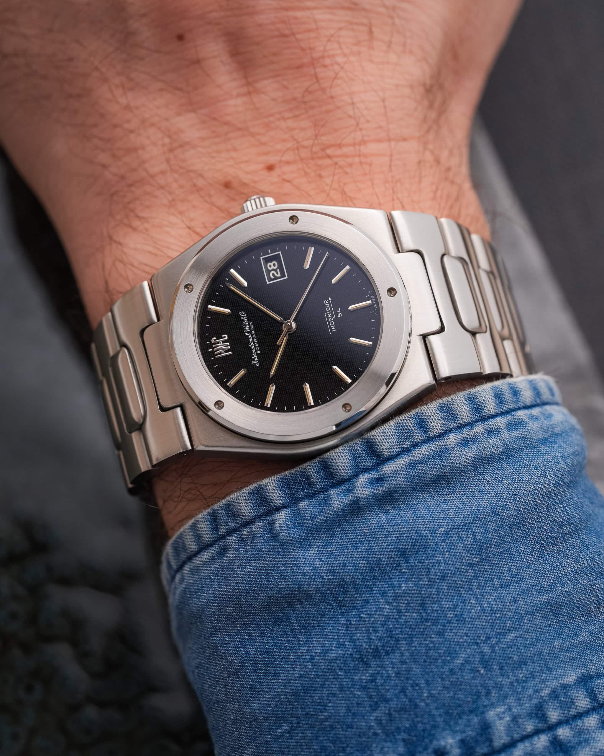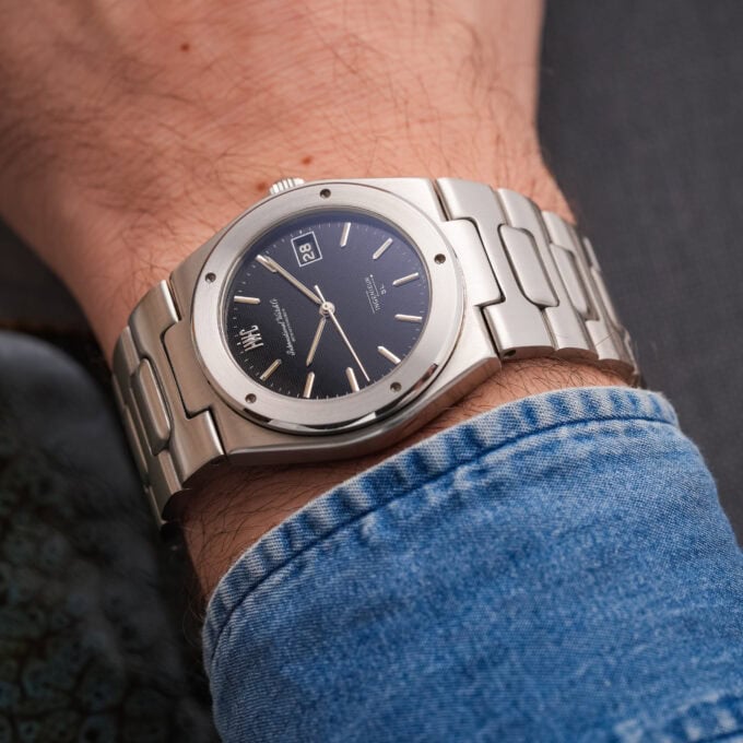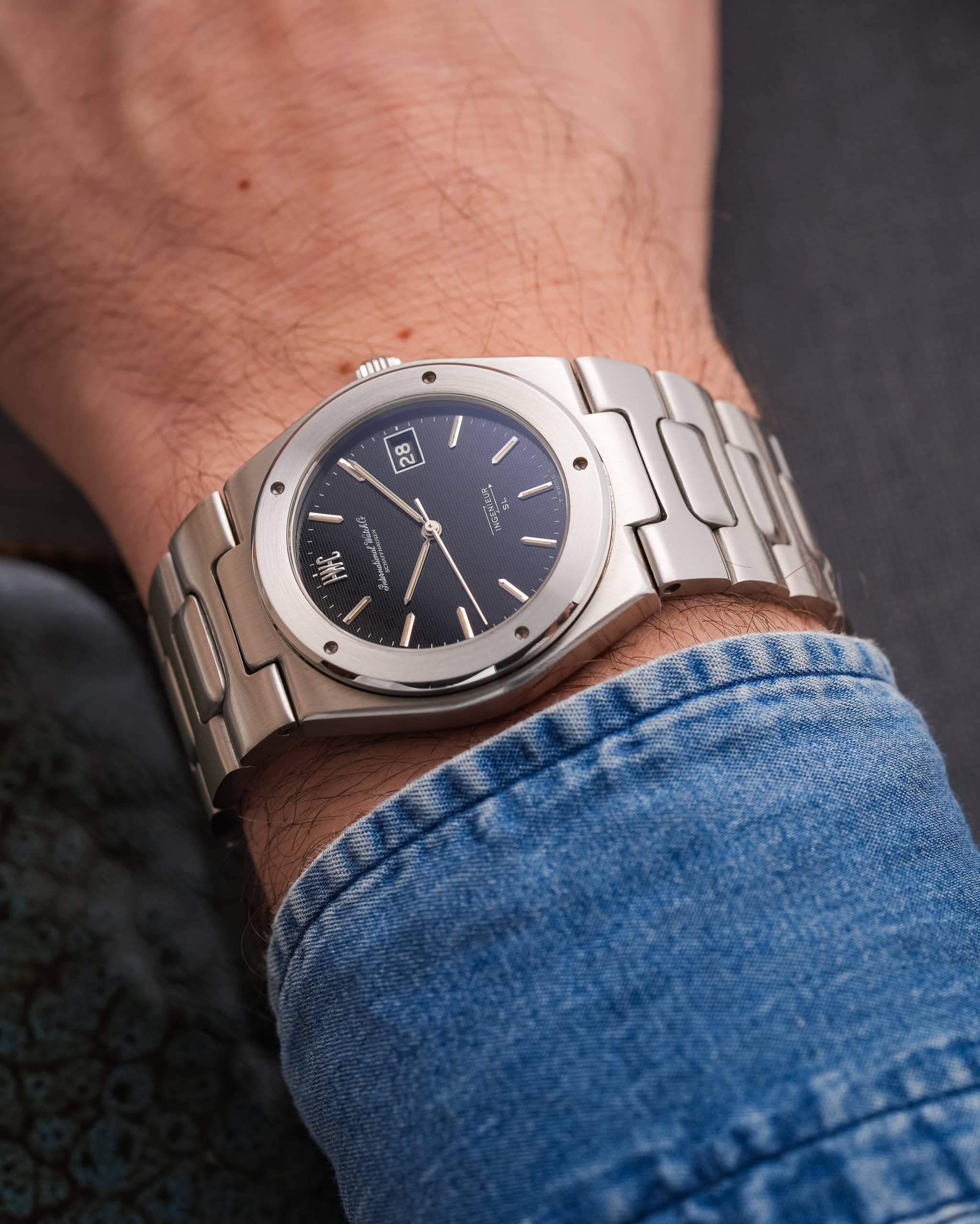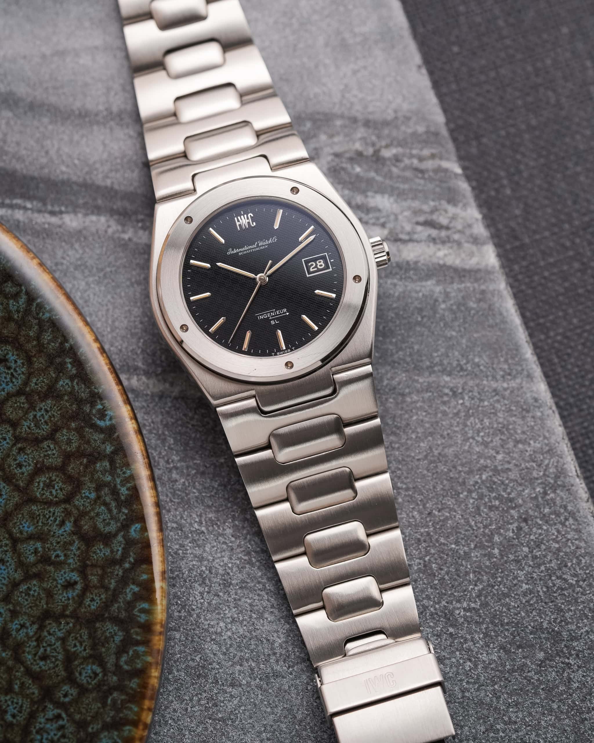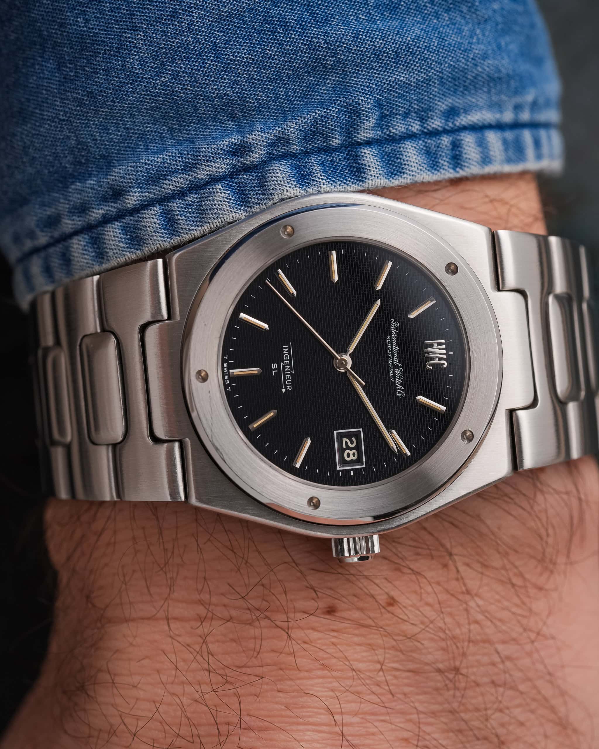 Designed by Genta along with the 3700 Patek Philippe Nautilus and 5402 Audemars Piguet Royal Oak, the IWC Ingenieur is part of the “Jumbo” trilogy of integrated bracelet sport watches that keep turning heads even decades after their introduction.