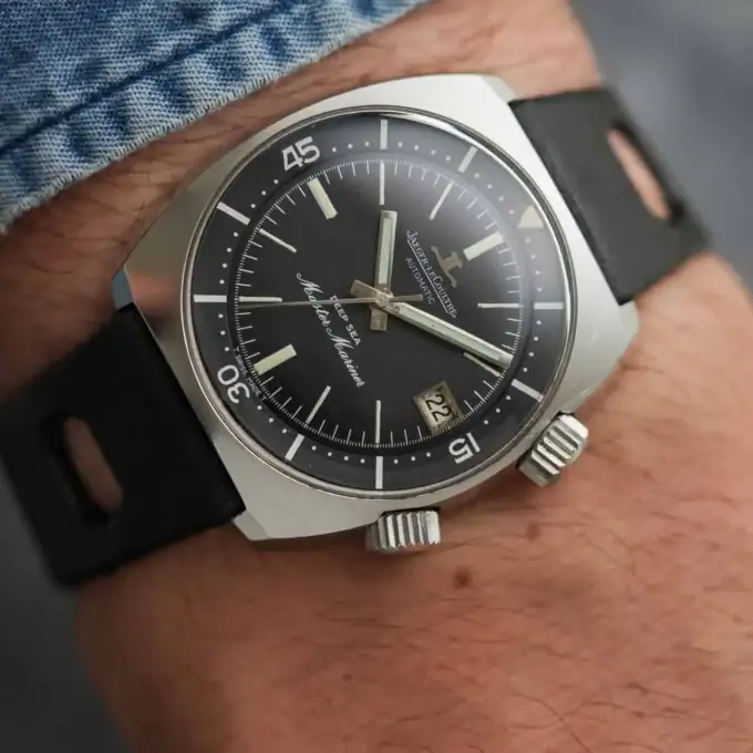 If you’re a strap collector and you’re looking for the right watch to take your straps to the next level…go for something super cool like this 1969 JLC Master Mariner aka “Barracuda”.