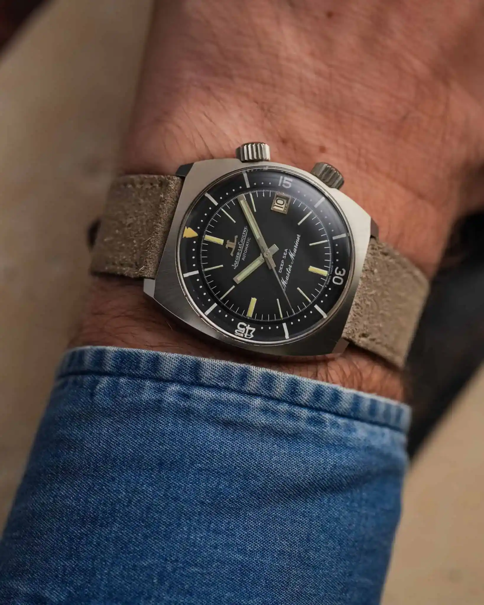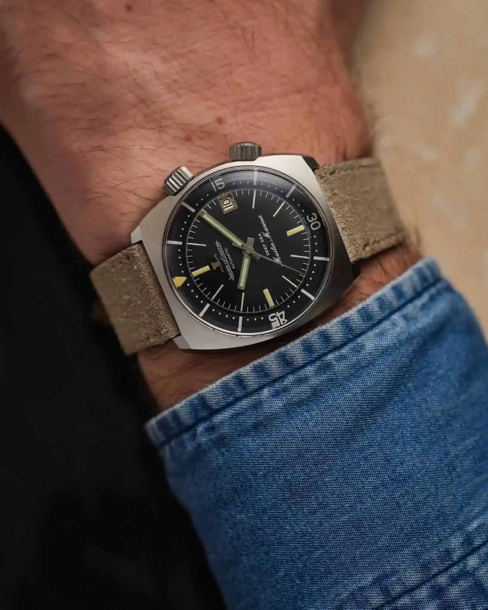 Turn the crowns and the watch still feels purposeful, almost surprisingly modern. Rotate the internal bezel and you’re reminded that this was engineered for the depths, not merely the display case. And beneath it all beats Jaeger-LeCoultre’s automatic calibre 883, a dependable movement whose smoothness and durability have earned it a reputation far beyond its production numbers.