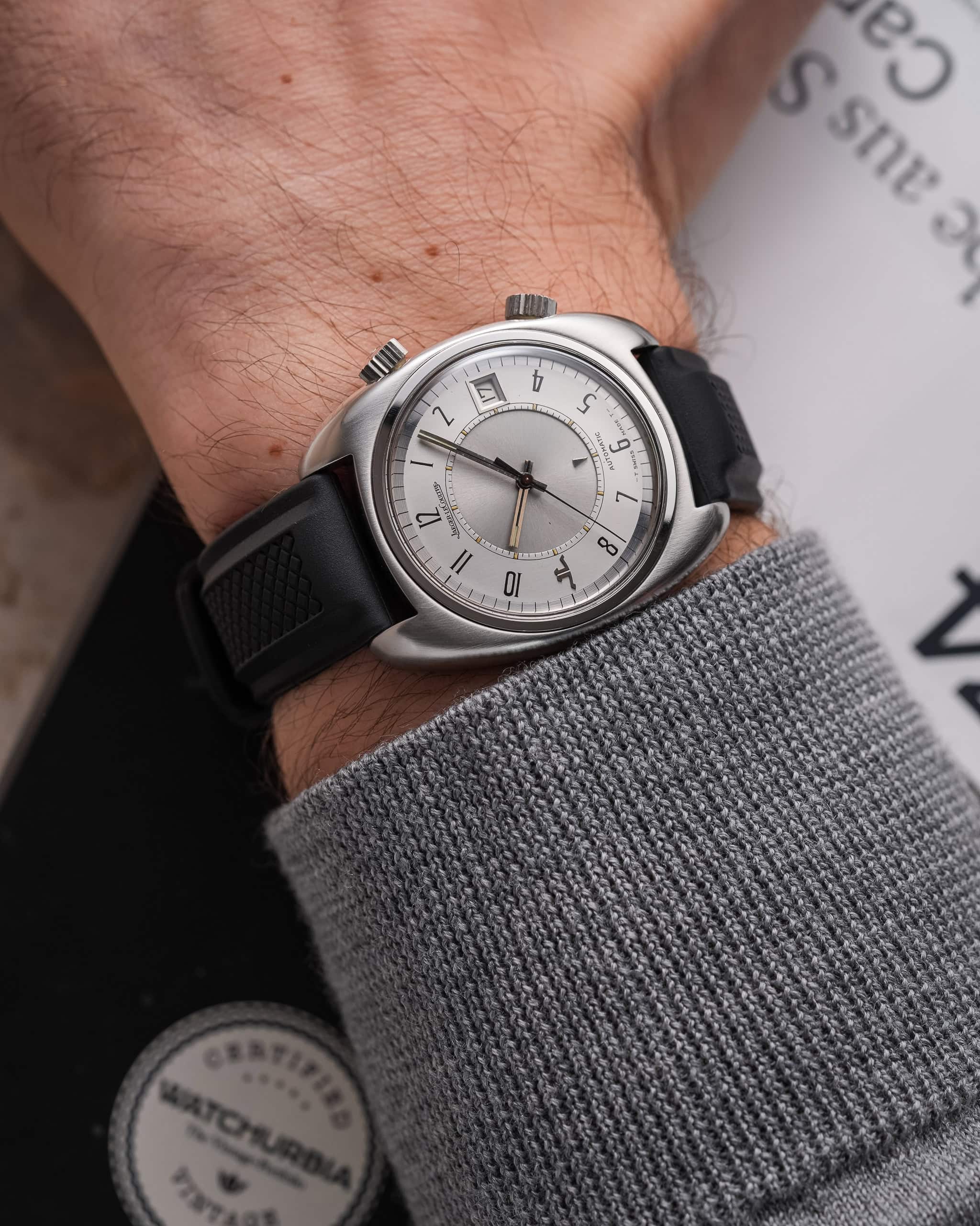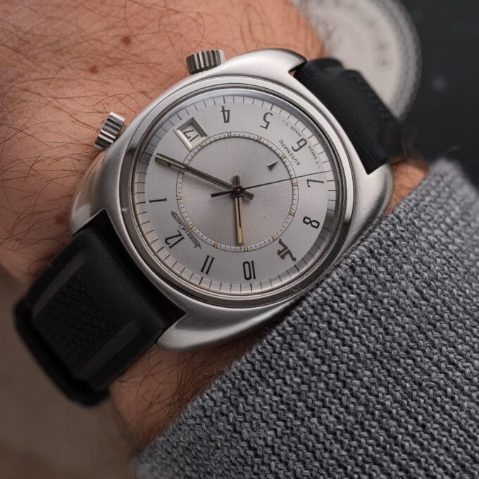 At 38 mm case diameter without the crowns, this cushion shaped case is a truly 1970s child, just bit larger than most of the watches JLC sold at this time.