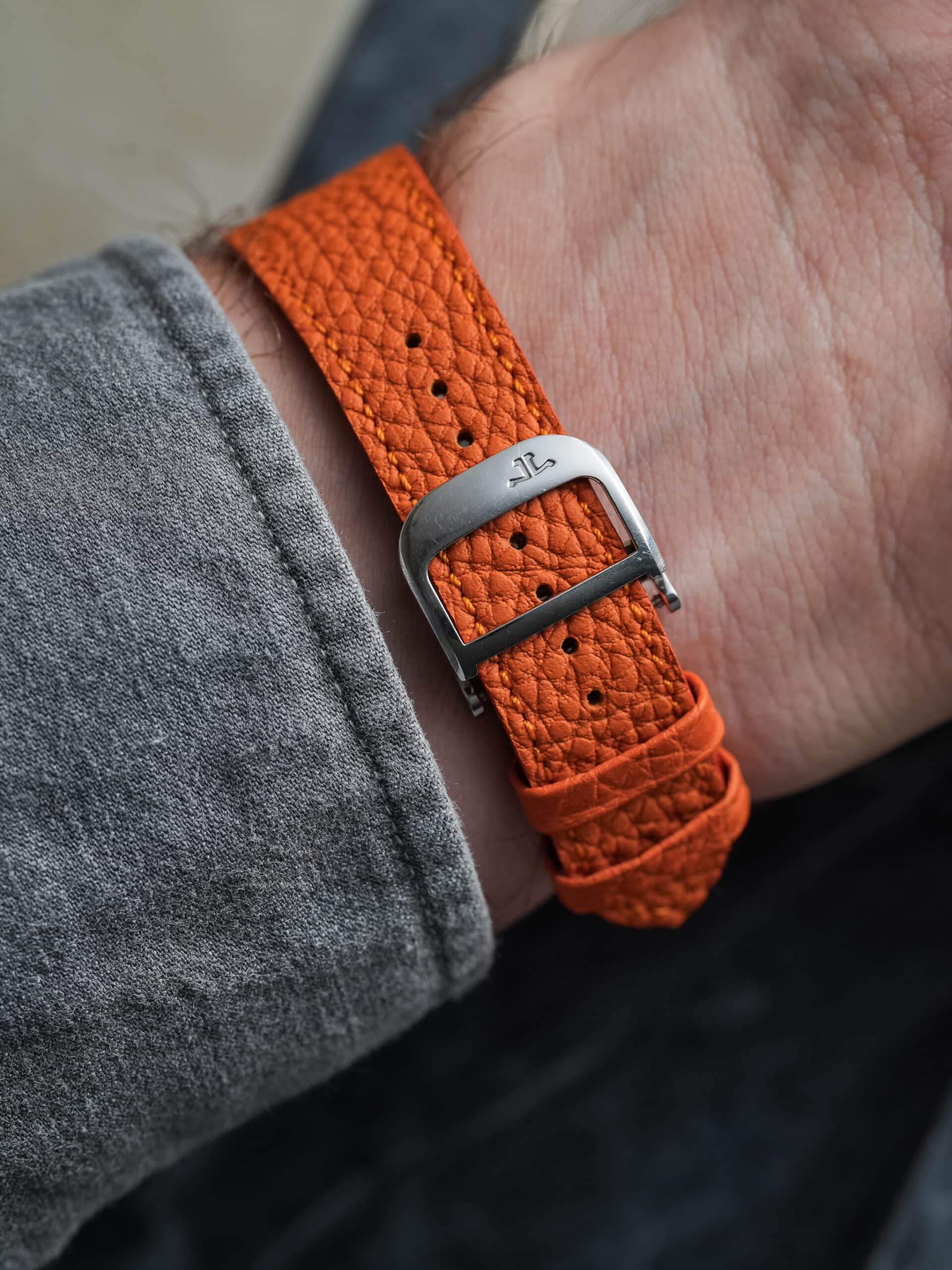 The strap is entirely hand-made in Germany, using the finest Fjord / Togo-Leather available.