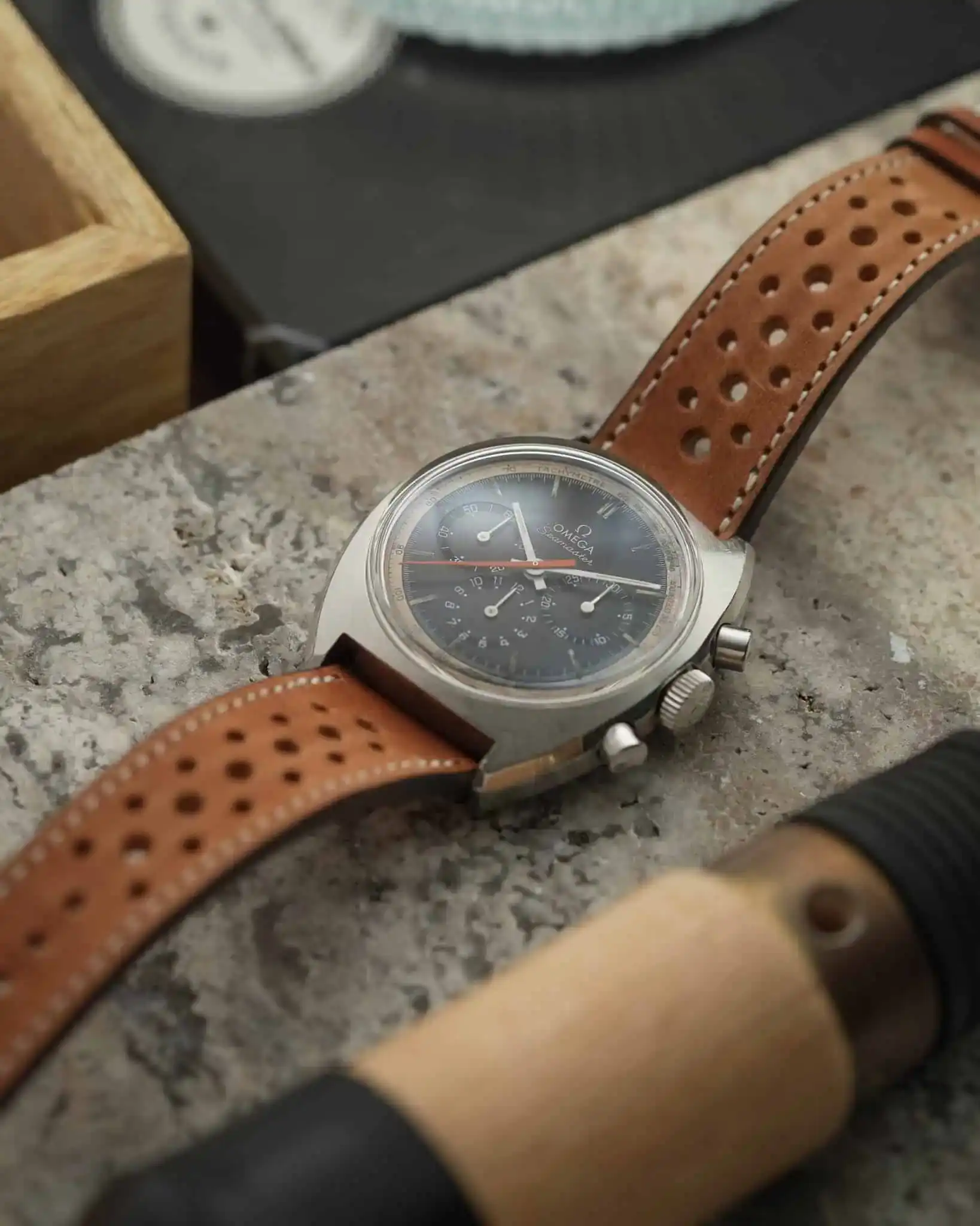 - That pop of orange on the chronograph hand—a little nod to the Speedy Ultraman.