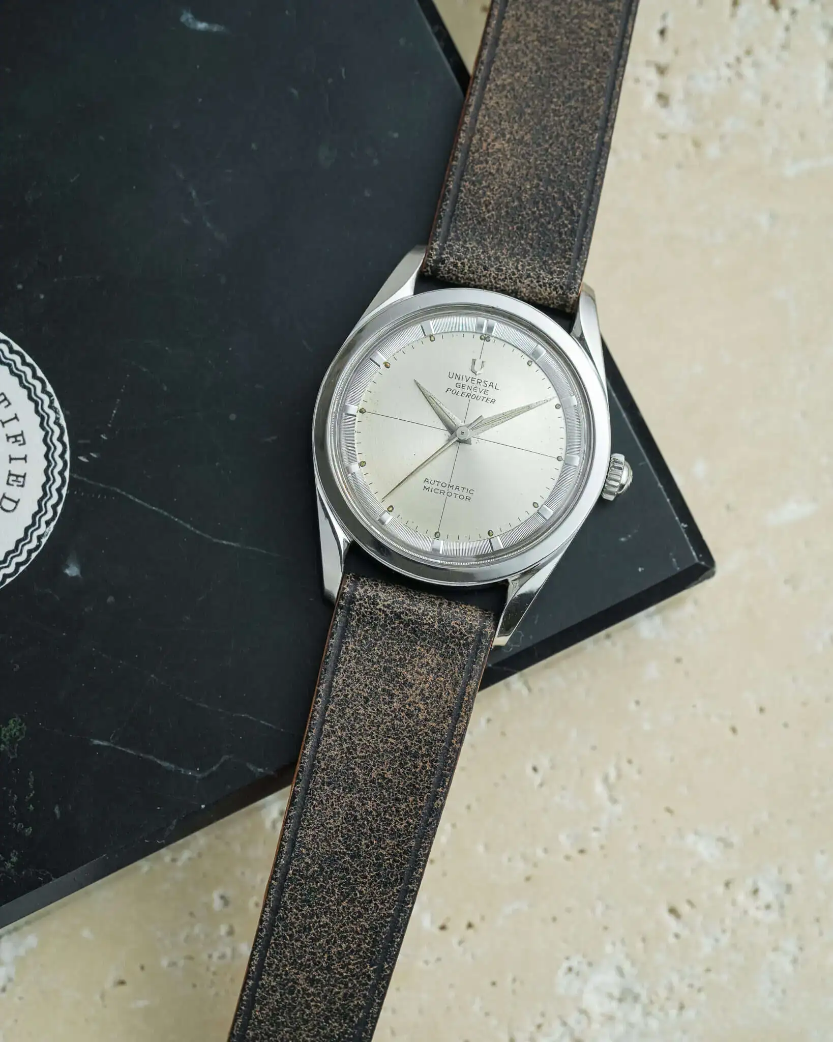 The last owner told us this watch was originally a gift from a company, featuring personal engravings from the first owner on the case back. He chose to remove them after purchasing the watch, which is why there are no Universal Genève marks left on the case back. Thankfully, the serial number was recorded inside the case back to preserve that information.