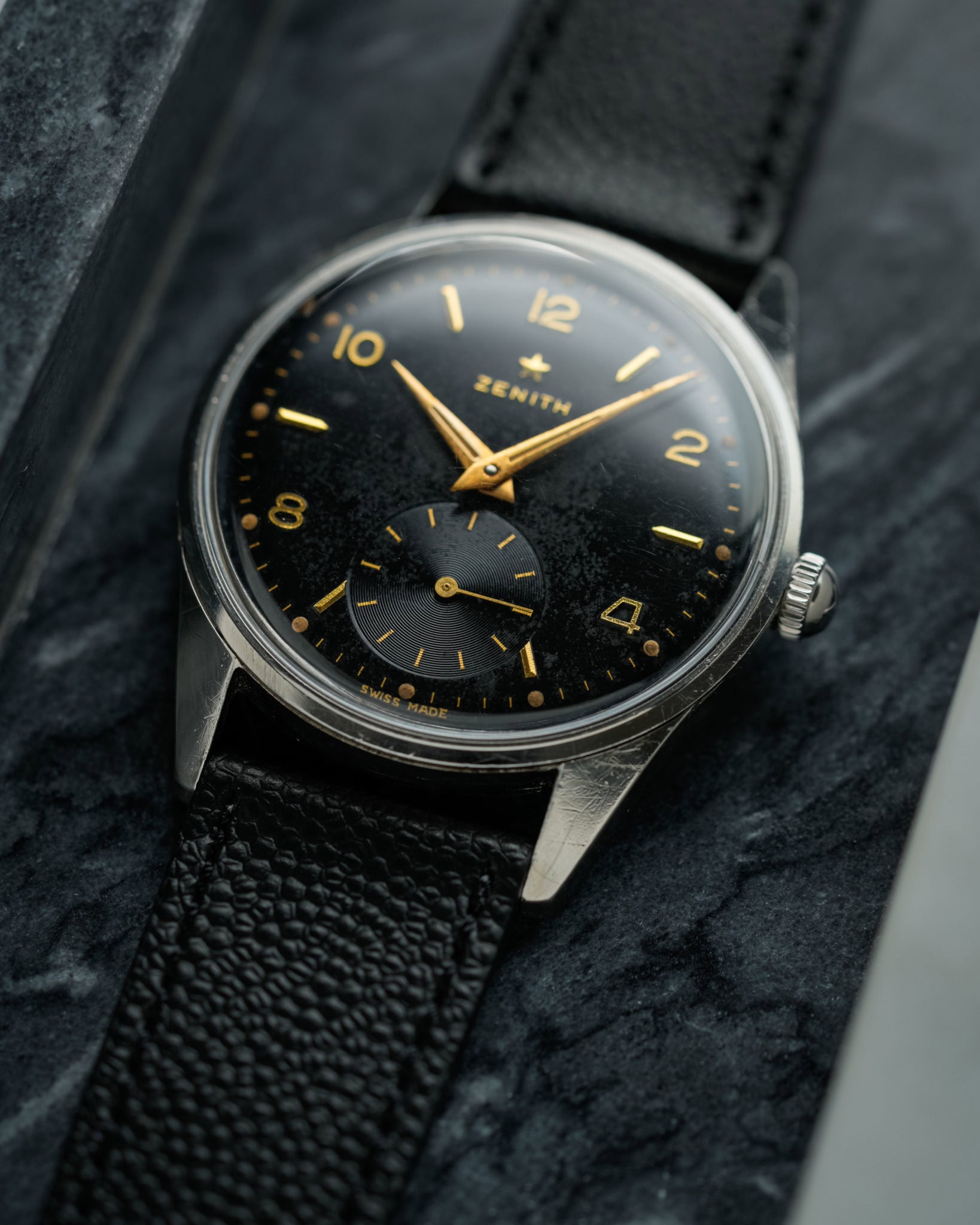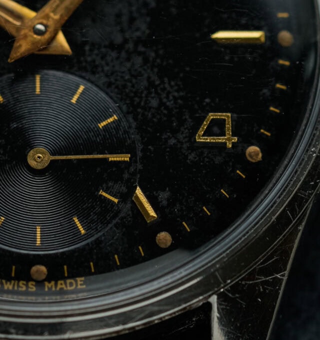 Finding a watch with a black gilt dial in all original condition can be a real hunt.